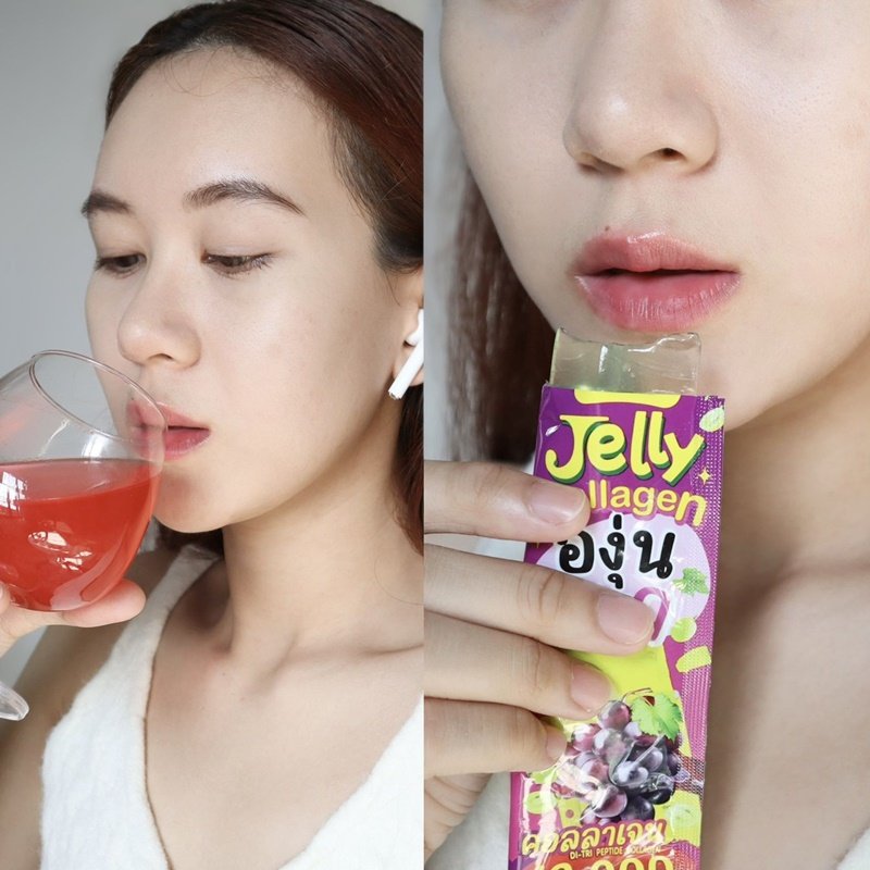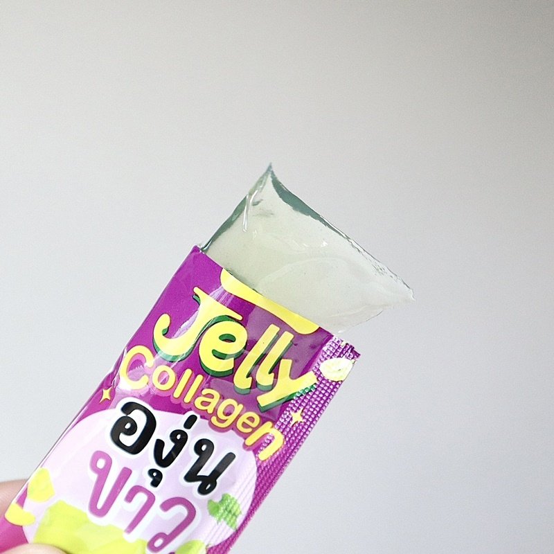 “เจลลี่องุ่นขาว” เป็นตัวใหม่ของทางแบรนด์ที่เพิ่งออกมาได้ไม่นาน เป็นเจลลี่หนึบๆที่ถูกต้องมาก เคี้ยวเพลิน อร่อย หอมองุ่น เหมือนกินขนมเลย หลักๆจะมีคอลลาเจน 10,000 mg และเพิ่มกลูต้าด้วย จะเน้นผิวสวยผิวใส ลดรอยสิว แถม 0% น้ำตาล